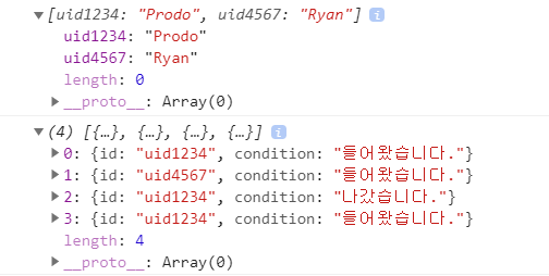 3. new_condition에는 id와 condition("Enter"시 "들어왔습니다.", "Leave"시 "나갔습니다." 저장)을 순서대로 넣어준다.