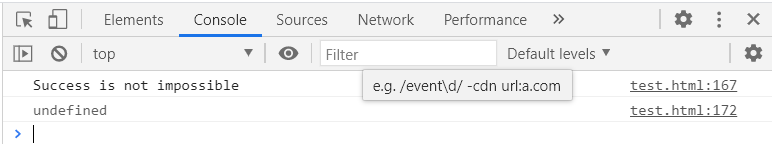 6. 마지막 then()에서 "Success is not impossible"을 출력합니다.
